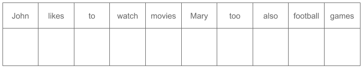 V = \{John, likes, to, watch, movies, Mary, too, also, football, games\}