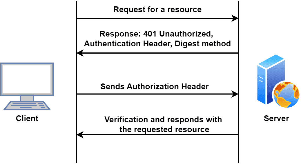 Moreover, the digest authentication method uses HTTP for communication. HTTP is susceptible to cyber-attacks such as the man-in-the-middle (MITM) attack.