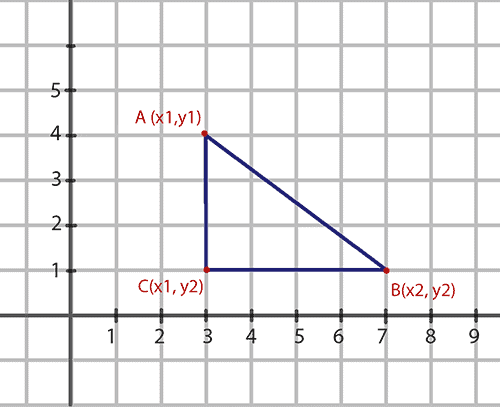 Let’s say we have two points on a plane: the first point A has the coordinates (x1, y1), and the second point B has the coordinates (x2, y2). We want to calculate AB, the distance between the points.