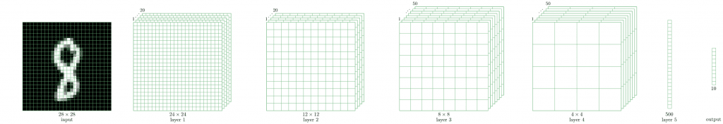 As we’ve mentioned, there are no models that work well in every situation. Nevertheless, after many years of research in ML, scientists have found models that perform very well in recognizing handwritten digits. Here, we use the so-called LeNet-5 model.