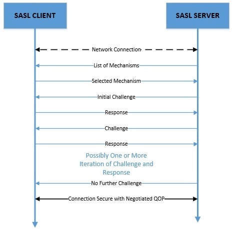 It’s important to understand here that SASL only provides a framework for the exchange of challenge and response data. It does not mention anything about the data itself or how they are exchanged. Those details are left for the applications adopting to use SASL.