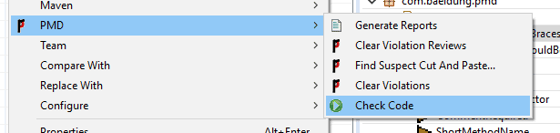 The PMD plugin can be directly installed from Eclipse Marketplace. The plugin can also be manually downloaded here as well. Once installed, we can run the PMD check directly from the IDE itself:
