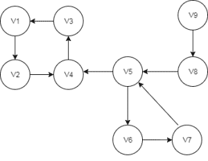 In our example, {v1,v2,v3,v4} can be considered a strongly connected subgraph if we can traverse to any vertex irrespective of what the current vertex is.