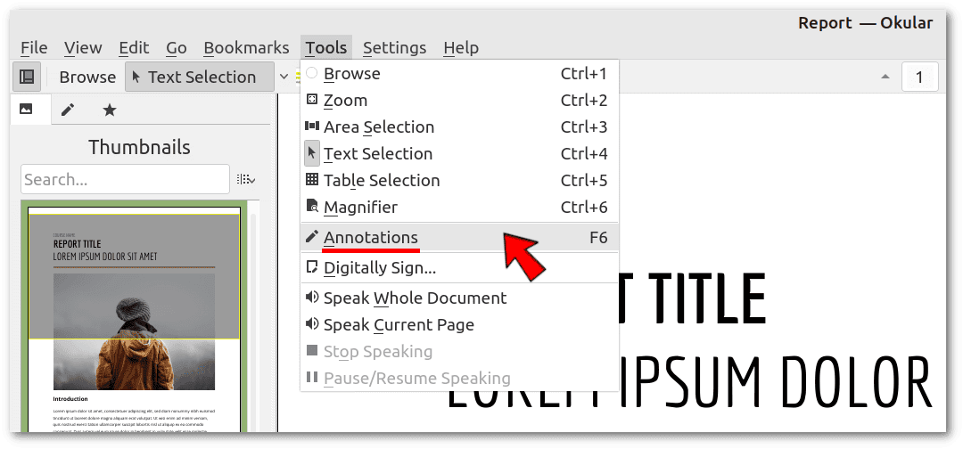 Evince PDF AnnotationsWe can save the annotated PDF as a new PDF and remove our annotations later.