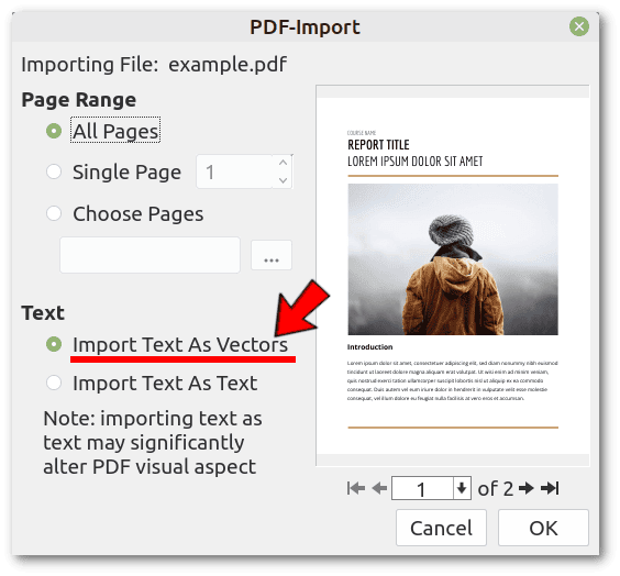 Inkscape wrong fonts when importing PDFThis is a missing font problem that we can work around by converting the text to vector objects using the Poppler/Cairo import option: