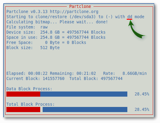 As a side note, raw access is possible also to individual partitions, not only to an entire disk. This may make sense in cases other than the cold migration we’re dealing with.