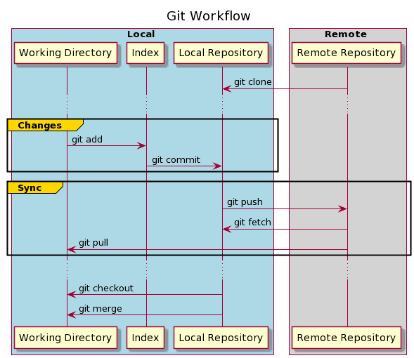 Those three steps are used to maintain the local changes. But as we know, the repository may also contain an external source. The last step is to synchronize both repositories and publish our changes.