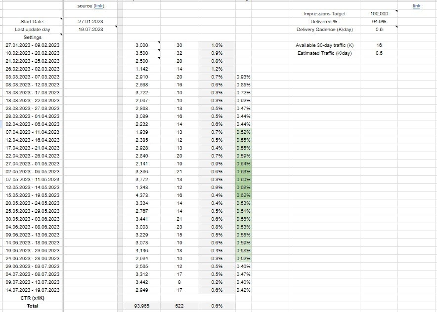 The budget depends on a single factor – the traffic of the article where we’re adding the section. More concretely, the CPM varies from $1.1 to $1.4.