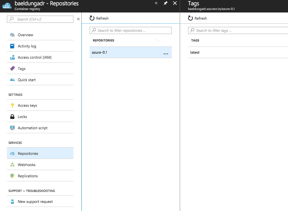 [INFO] Pushing baeldungadr.azurecr.io/azure-0.1