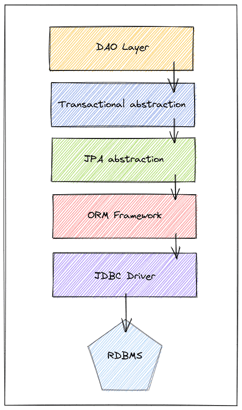 We need to know that dealing with persistence layers in our application may involve many layers of abstractions. Each of those layers has a different responsibility. However, to simplify, let’s say that in the end, those layers impact either how our application deals with the database or how the database deals with the data manipulation.