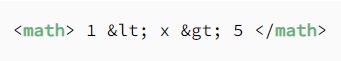 This attempts to represent that x has a value between 1 and 5. However, an XML process can’t know that the intention isn’t to have an element “x” in between the two numbers.